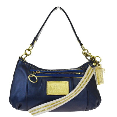 送料無料 【中古】 コーチ COACH ポピー 2WAY ショルダーバッグ ネイビー レザー 15335 08HB643